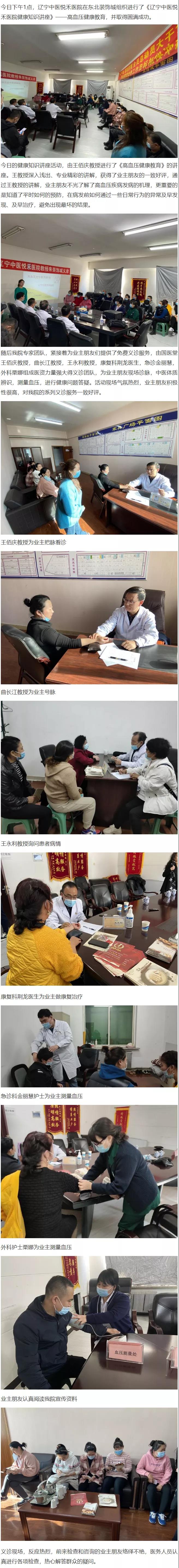 辽宁中医悦禾医院与东北装饰城联合举办健康知识讲座——高血压健康教育并开展大型公益性义诊活动