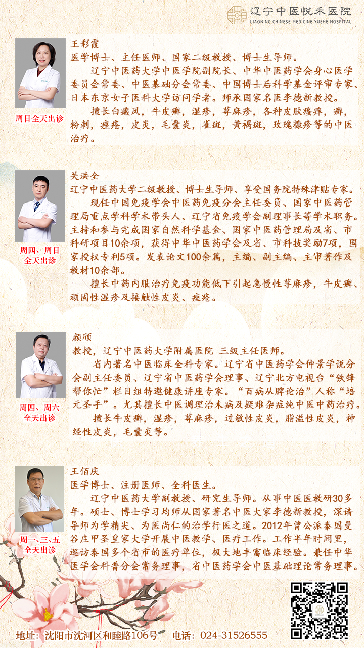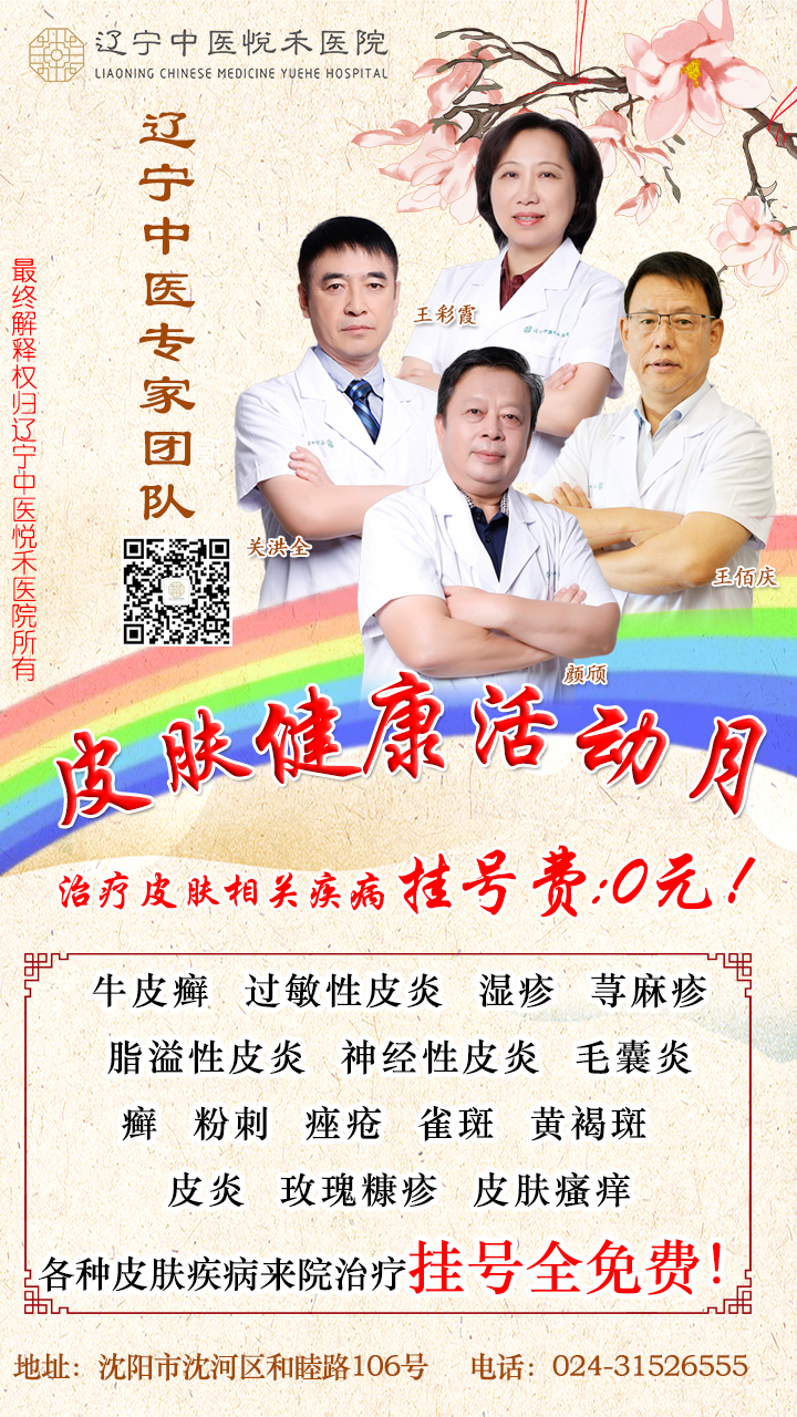 辽宁中医悦禾医院以中医为特色,倡导中医辨证诊疗及中西医结合治疗,形成辽宁中医悦禾医院皮肤病的诊疗体系,治疗各类皮肤疾病。