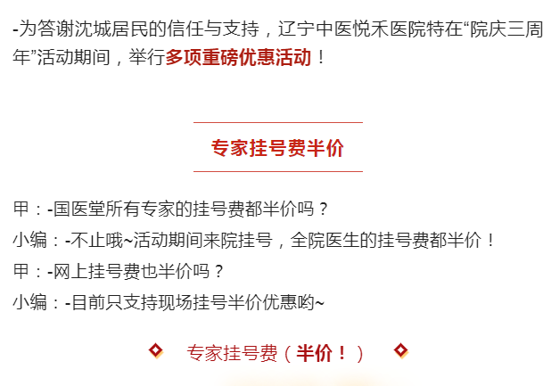 -为答谢沈城居民的信任与支持,辽宁中医悦禾医院特在“院庆三周年”活动期间,举行