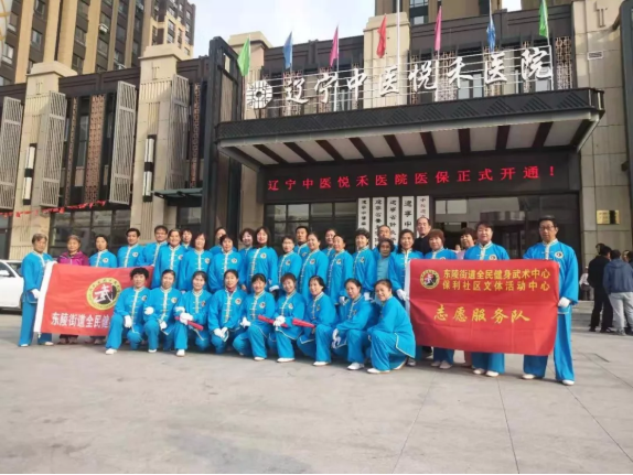 活动在辽宁中医悦禾医院前广场进行,活动中,东陵街道全民健身武术中心的活动成员表演了太极拳、八段锦、扇舞等节目内容,精彩的表演,飒爽的英姿带动了周围社区居民的自发参与,真正实现了全民健身全民参与的目的,活动非常成功。